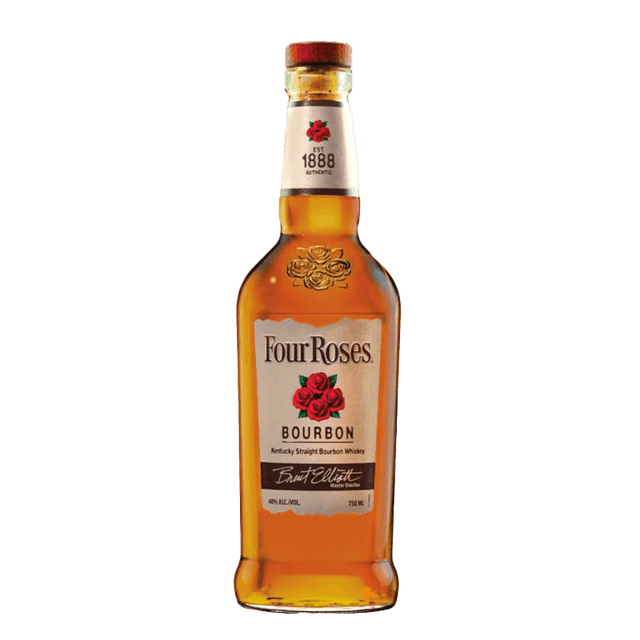 Appearance: Golden amber with hues of copper, Four Roses Bourbon Whiskey presents a rich and inviting color in the glass, hinting at its depth and complexity. Nose: The aroma is warm and welcoming, with notes of caramel, vanilla, and oak intermingling harmoniously. Subtle hints of ripe fruits, baking spices, and a touch of floral essence add depth and intrigue, promising a nuanced tasting experience. Palate: On the palate, this bourbon whiskey unfolds with smoothness and balance. Rich caramel and toffee notes dominate, complemented by flavors of vanilla, toasted nuts, and a hint of cinnamon. The whiskey's oak aging lends a subtle smokiness and depth, while a gentle warmth spreads across the palate, leading to a satisfyingly long and pleasant finish. Finish: The finish is lingering and satisfying, with echoes of caramel, vanilla, and oak lingering on the palate. A delicate sweetness emerges, balanced by hints of spice, ensuring a harmonious conclusion to each sip.